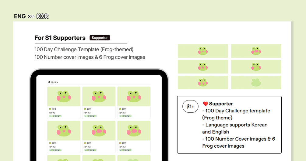 Supporters will receive 100 Day Challenge template Frog theme!