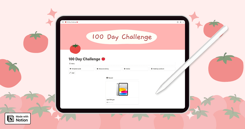 ❗Please read this before downloading⚠︎ Notice🍅 Notion 100 Day Challenge template