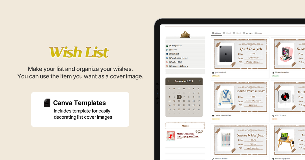 - 위시리스트를 쉽게 꾸밀 수 있는 캔바 템플릿 - 컨텐츠 이미지