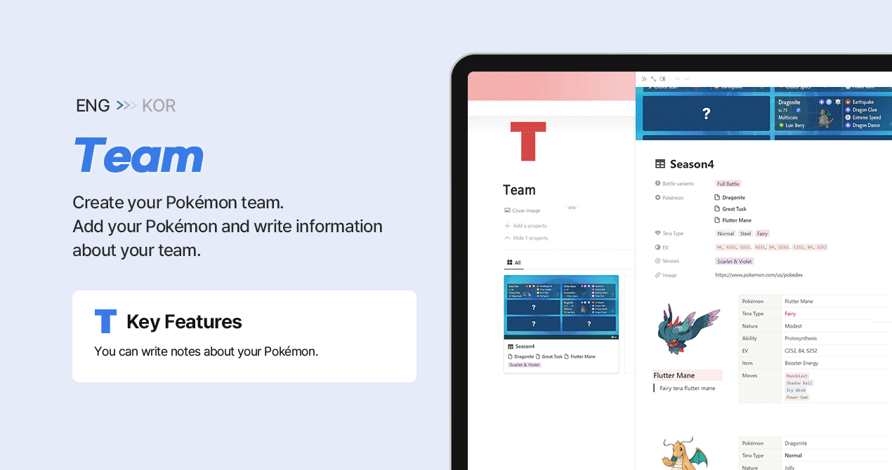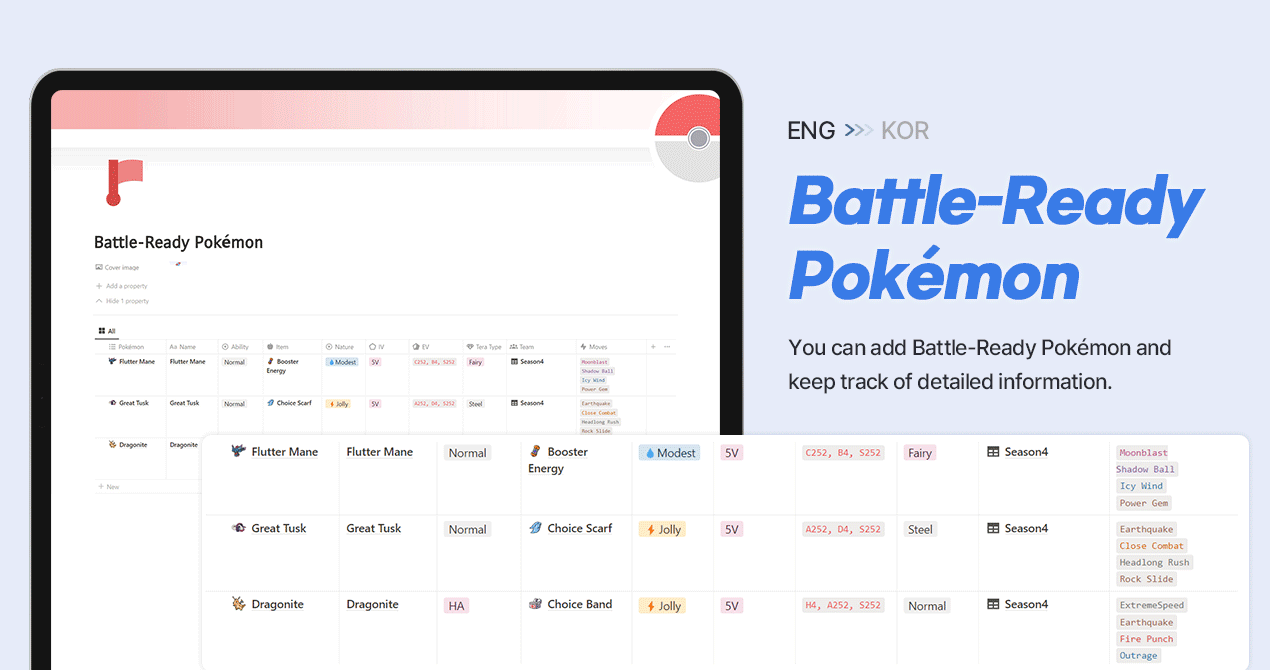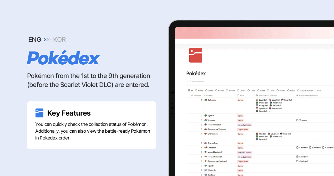 Notion Pokémon Organizer Template | 포켓몬 정리 노션 템플릿